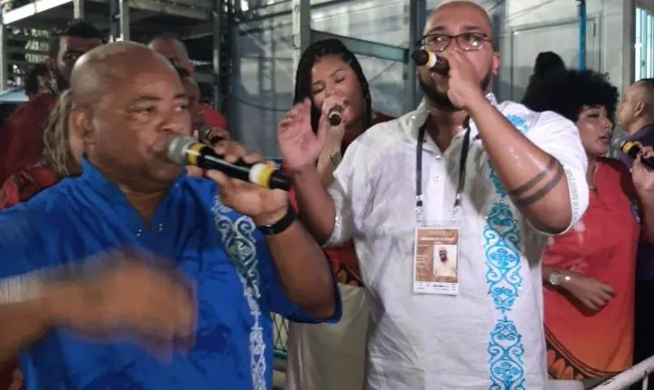 O primeiro casal de mestre-sala e porta-bandeira Yago Silva e Lohanne Lemos, fizeram uma bela apresentação representando os orixás Xangô e Iansã, a partir do elemento fogo que os une, fazendo com que tenham temperamentos e poderes semelhantes.