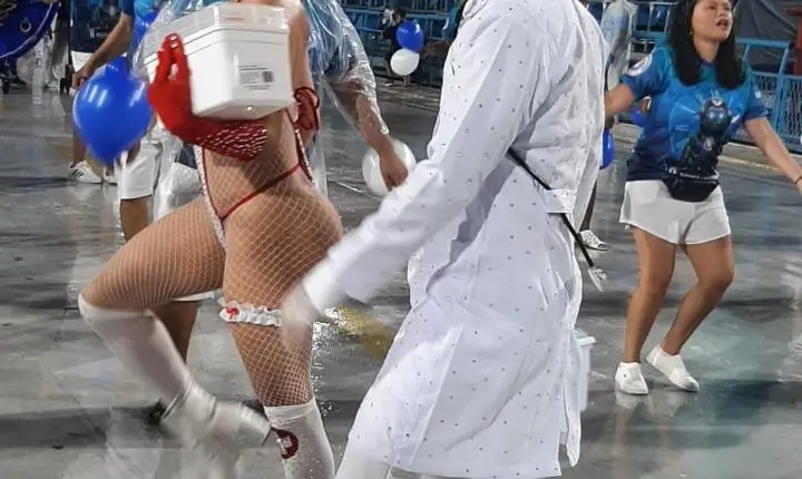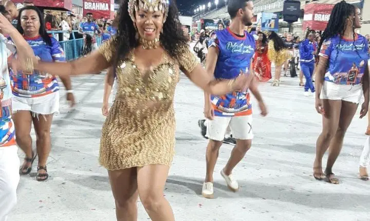 O bom andamento realizado pela bateria “Cadência da Baixada”, de mestre Juninho, ajudou bastante na condução do samba. A sua frente a rainha Malu Torres com uma roupa que tinha pendurado artigos vendidos em banca de camelô. Com samba no pé e muito entusiasmo, era acompanhada por Mestre Juninho trazendo um isopor tipo camelô de praia, de onde distribuía picolés.