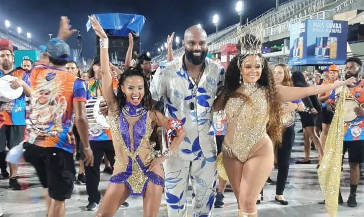 A rainha francesa Davina foi coroada na pista minutos antes do início do ensaio e ao longo da pista foi destaque com sua alegria e samba no pé ao lado da madrinha Ale Jansen.