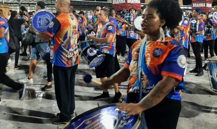 A “Ritmo Meritiense”, bateria do Mestre Branco Ribeiro, fez um em ensaio muito bom, um dos melhores do grupo, e com uma performance que encaixou muto bem com a condução do carro de som. A rainha Lilian Brito, a Lili Tudão, brilhou mais uma vez intensamente a frente de seus ritmistas. Esbanjando carisma e alegria.