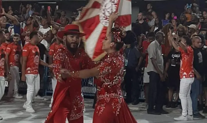 O casal de Mestre-Sala e Porta-Bandeira, Marcinho Siqueira e Winnie Lopes, fizeram uma apresentação segura, com giros e coreografias bem realizadas em cima da letra do samba.