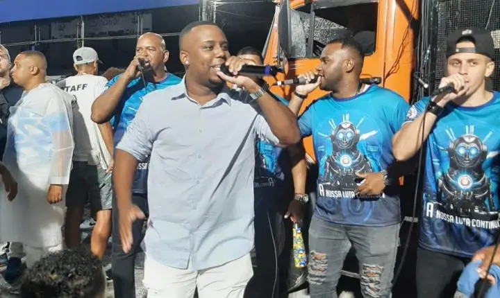 O intérprete Thiago Brito, voz oficial pelo segundo ano após seu retorno para a escola, teve um desempenho eficiente a frente do carro de som, conduzindo o canto da comunidade.