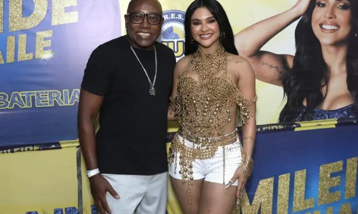 A estrela da celebração foi Mileide Mihaile, rainha de bateria da escola. Após passar o Natal na Europa e celebrar a virada em Fernando de Noronha, Mileide retornou ao Rio revigorada e com looks impactantes: um vestido prata artesanal de 5 quilos, confeccionado pela marca Nilme com styling de Lucas Andrade, e um segundo visual com short branco e cropped dourado. Ela sambou, esbanjou simpatia e foi surpreendida com o croqui de sua fantasia do Carnaval 2026.