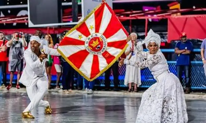 O primeiro casal de mestre-sala e porta-bandeira, Rute Alves e Julinho mostrou sintonia no bailado de quem quer repetir as boas notas do carnaval passado.