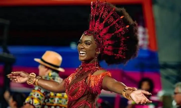 A excelente bateria de mestre Ciça manteve o ritmo até o final do ensaio. Em seu terceiro ano de reinado à frente dos ritmistas da “Furacão vermelho e branca“, a atriz Erika Januza brilhou em sua passagem pela avenida.